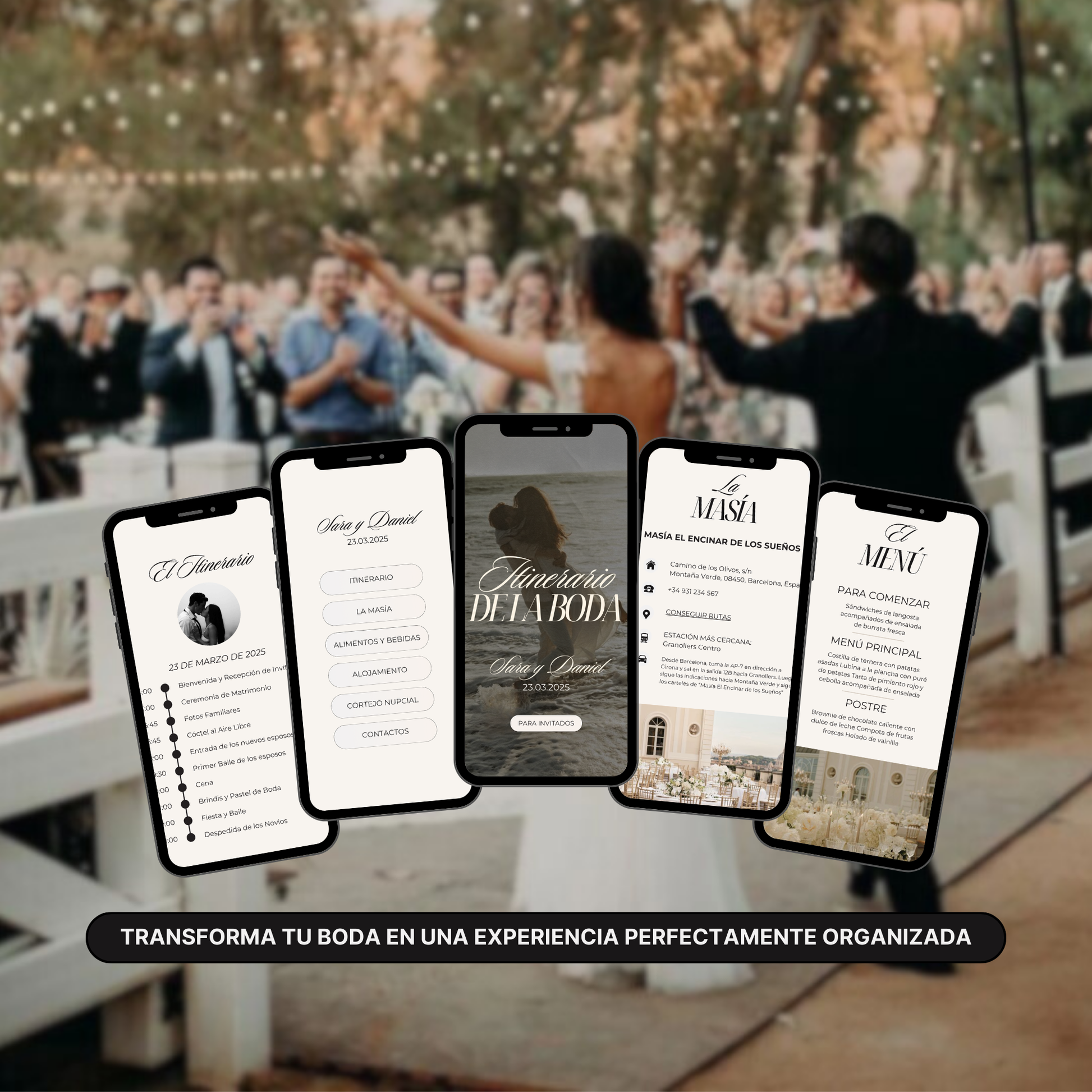 - Accesibilidad Móvil: Tus invitados pueden acceder al itinerario desde sus teléfonos móviles, ¡incluso sin conexión a internet!
