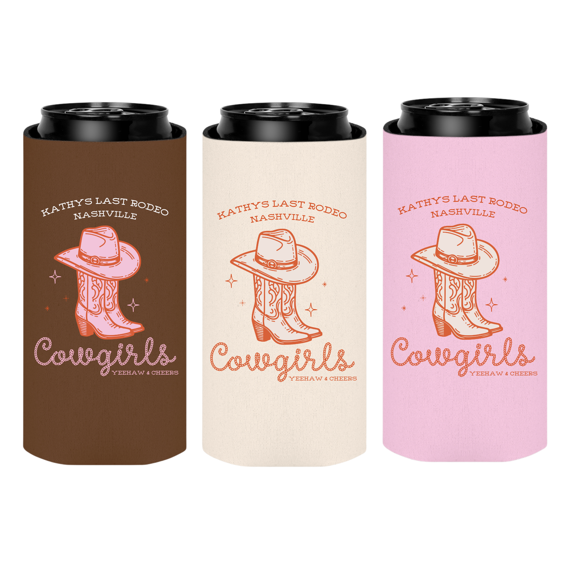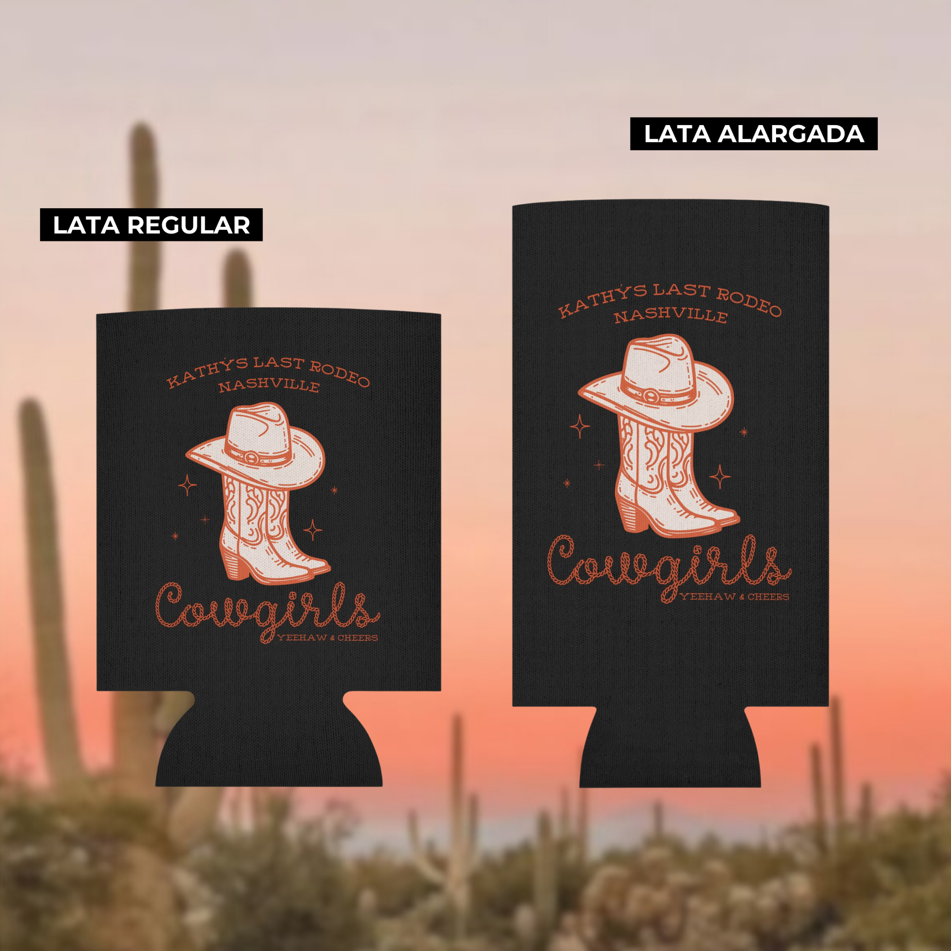 Estos coozies personalizados para latas slim son el detalle perfecto para tu despedida temática western: divertidos, prácticos y llenos de estilo.