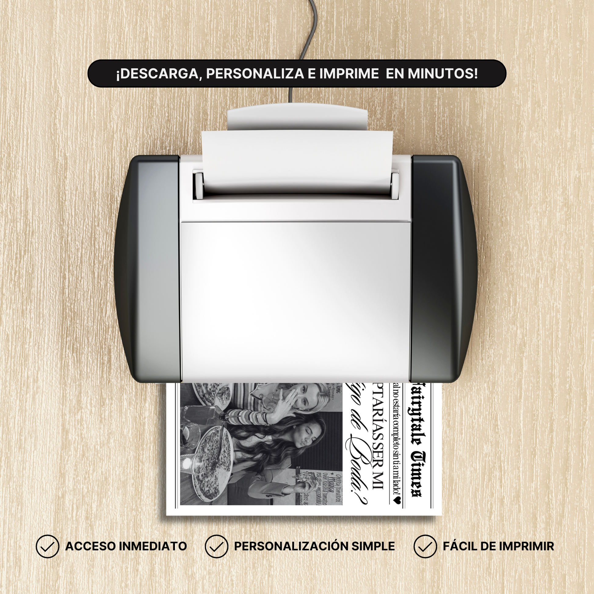 Periódico de Propuesta para Testigo de Boda / Dama de Honor – Plantilla Personalizable