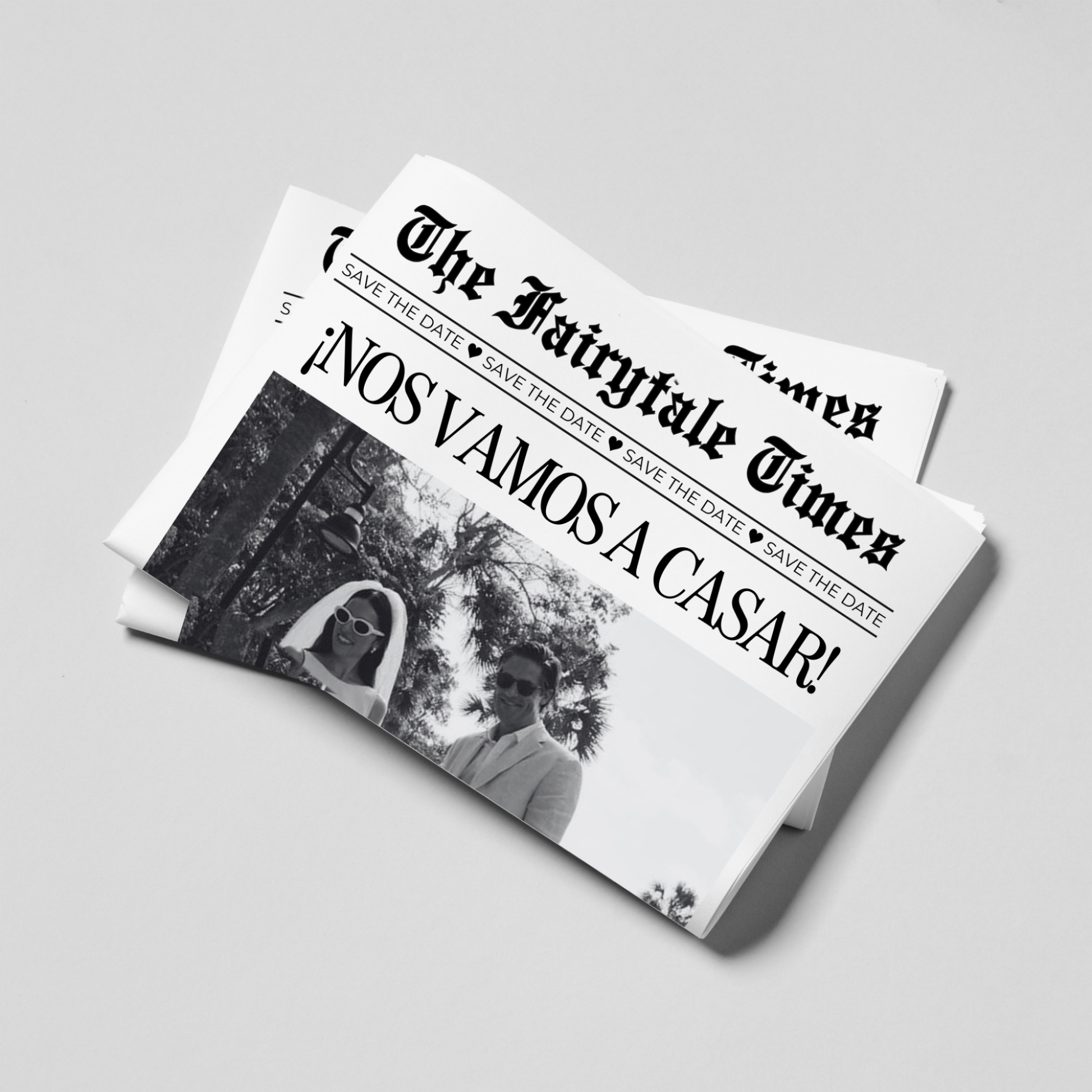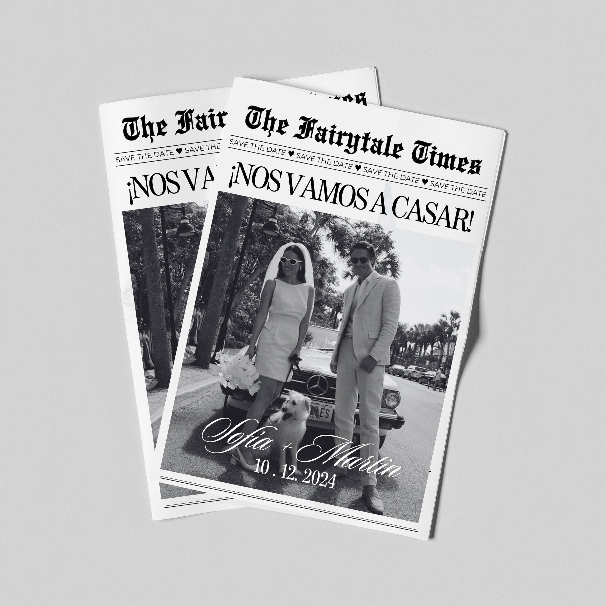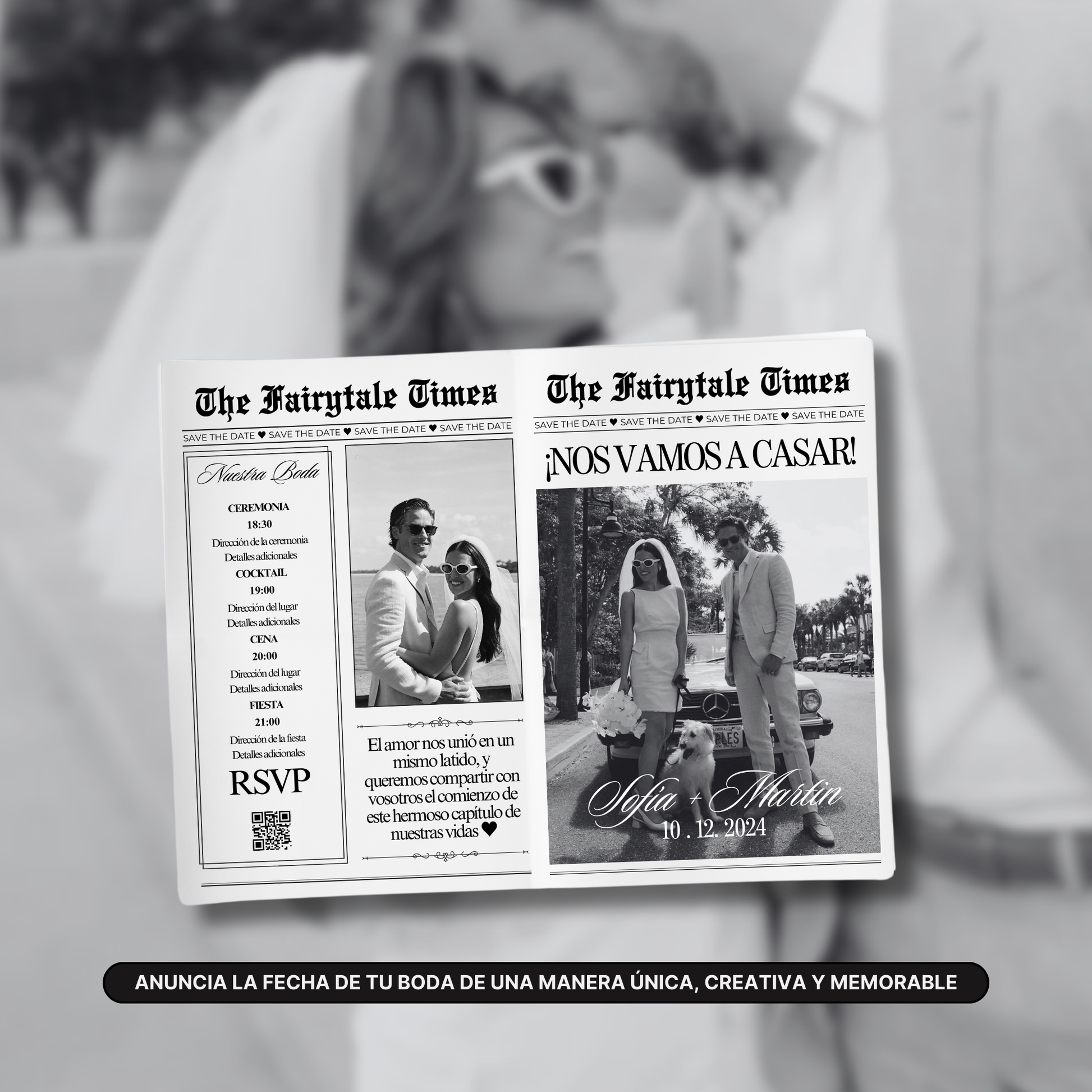Sorprende a tus seres queridos con una invitación creativa y memorable. Nuestra plantilla de periódico personalizada para fotos de Save the Date es la clave para crear un anuncio lleno de estilo, humor y originalidad.