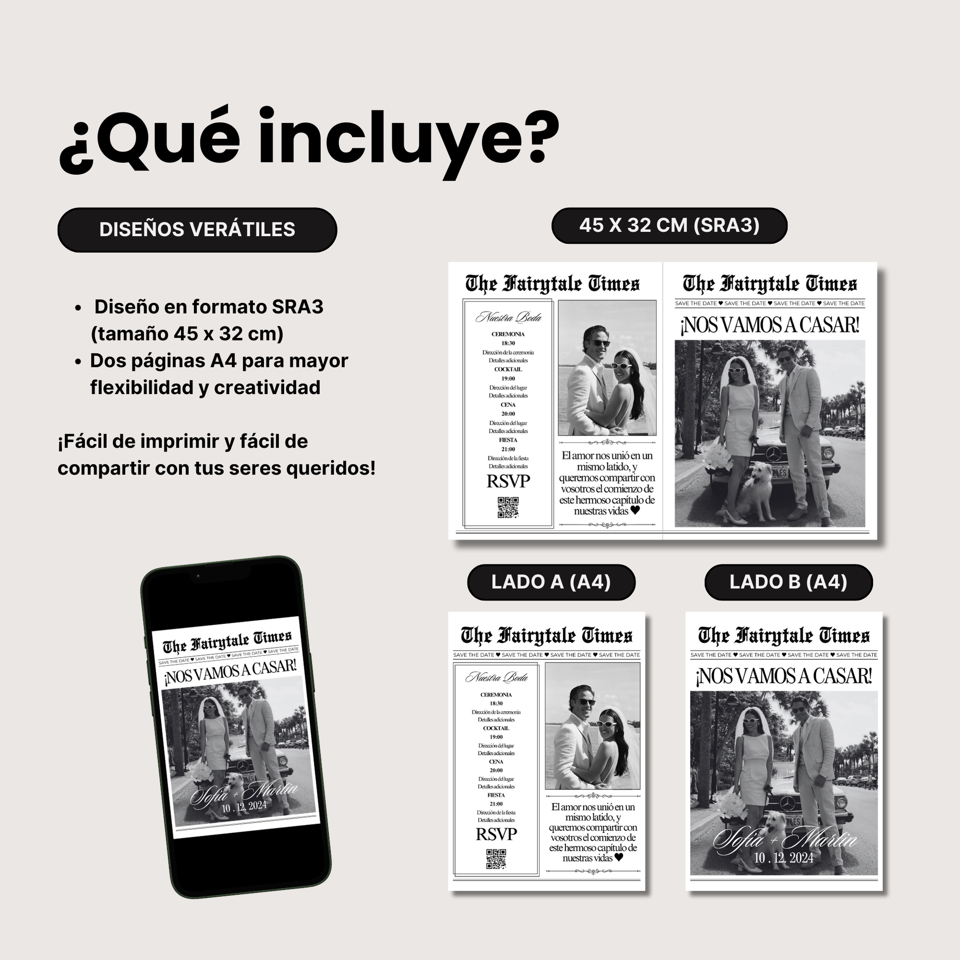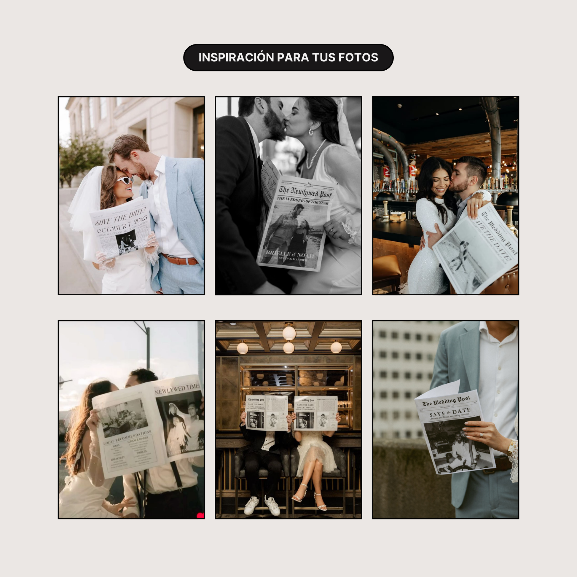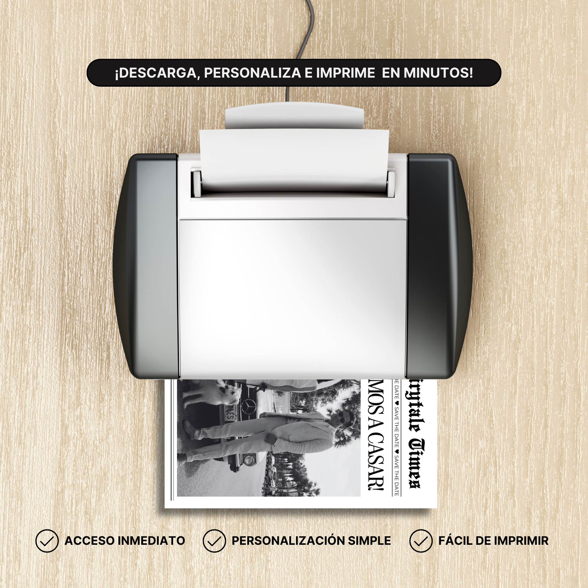 Sorprende a tus seres queridos con una invitación creativa y memorable. Nuestra plantilla de periódico personalizada para fotos de Save the Date es la clave para crear un anuncio lleno de estilo, humor y originalidad.