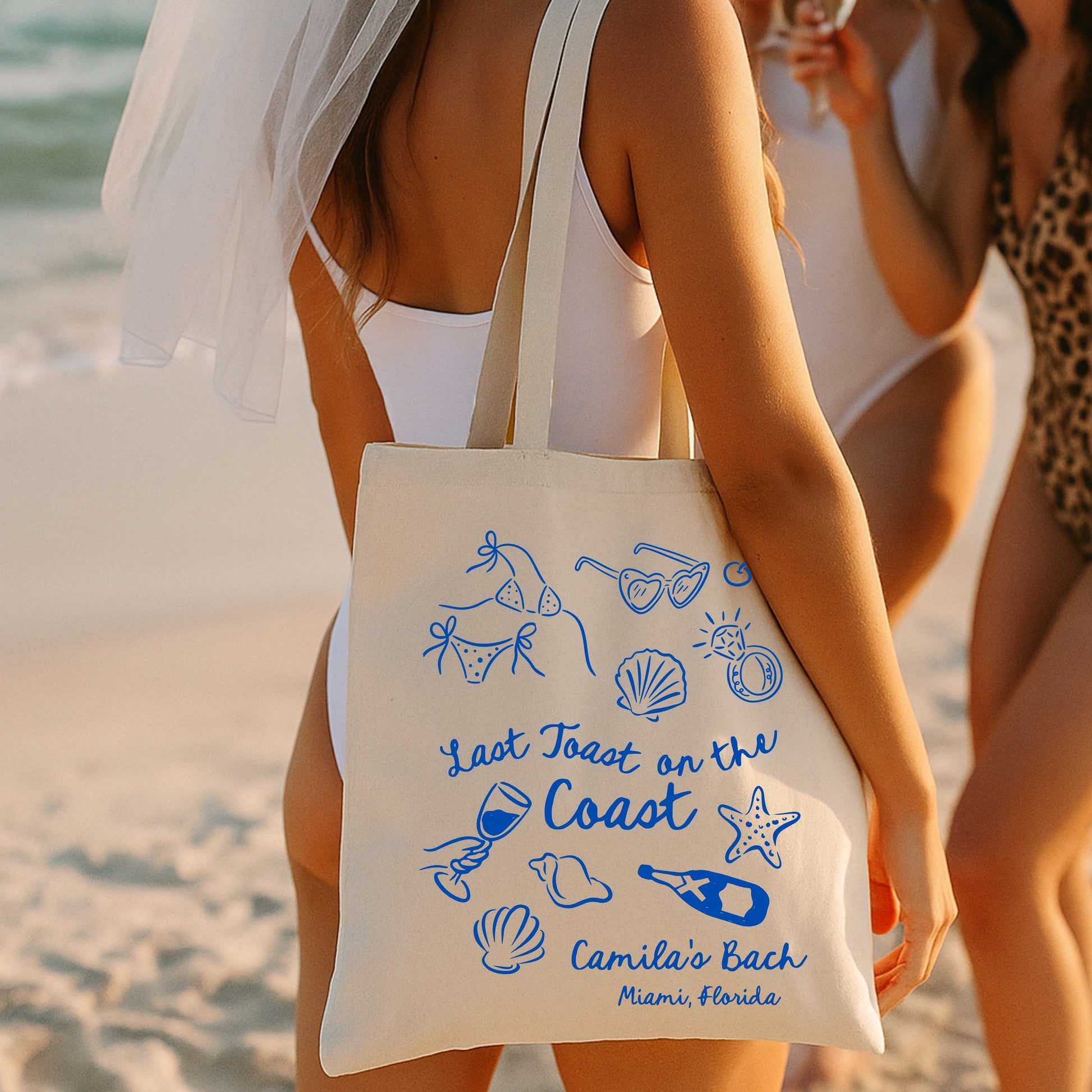 Ya sea que estén tomando el sol en la playa, brindando con mimosas frente al mar o planeando una escapada tropical, este tote encaja perfecto con la vibra coastal de la ocasión. ¡Y lo mejor es que lleva tu sello personal!