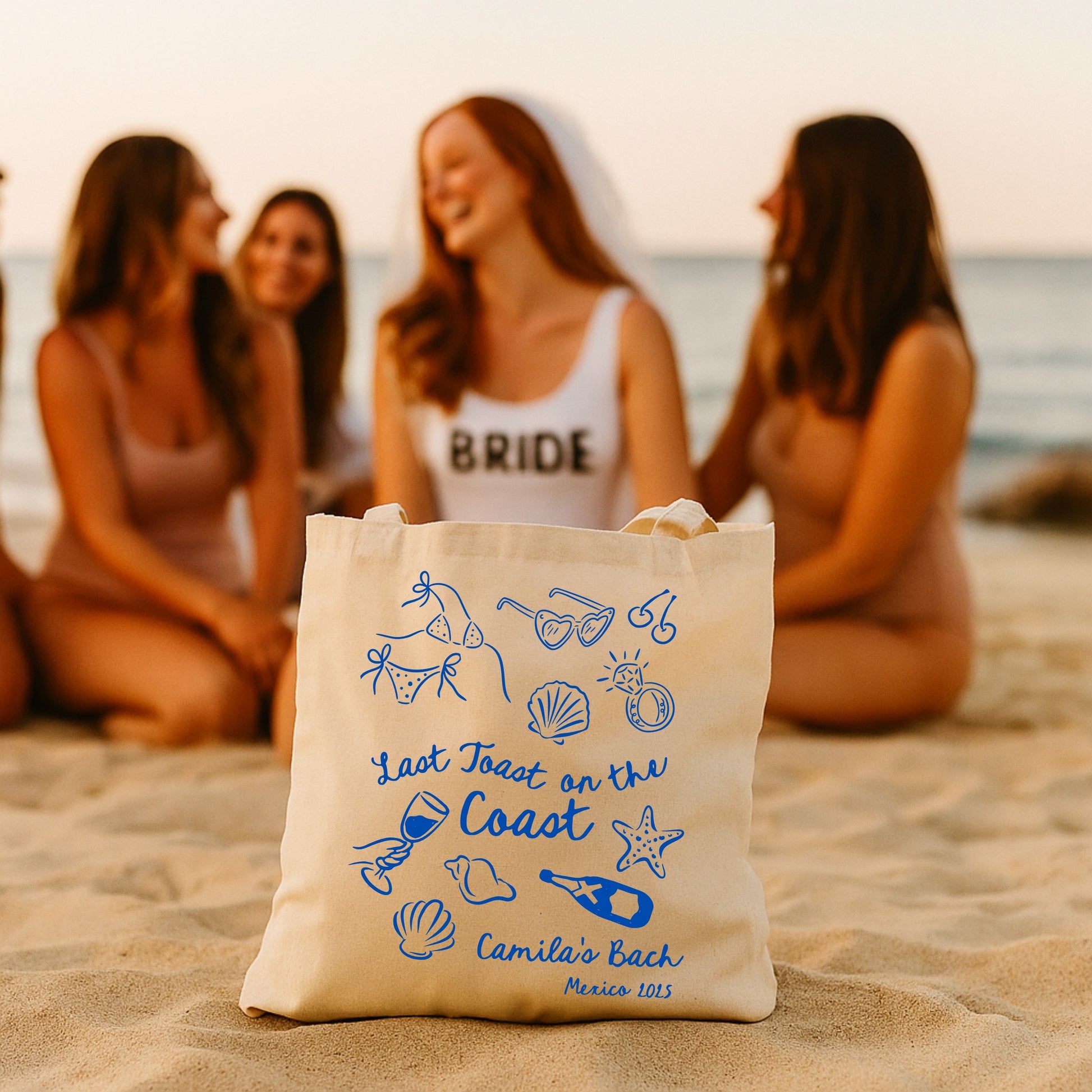 Este bolso personalizado es perfecto para darle la bienvenida a tu bride squad, llevar todo lo esencial (sí, hasta los snacks de emergencia), y crear un recuerdo bonito que realmente usarán después del viaje.